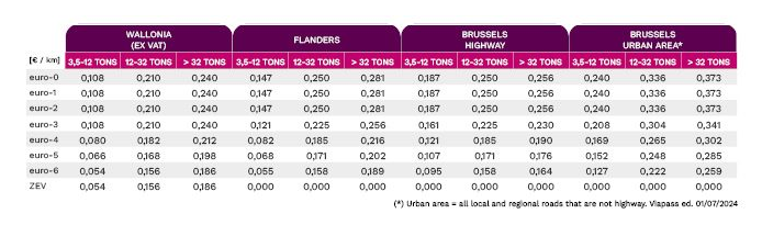 El software de los dispositivos de todos los proveedores de servicios acreditados para el cobro por kilómetro en Bélgica, se actualizará automáticamente con estas tarifas.