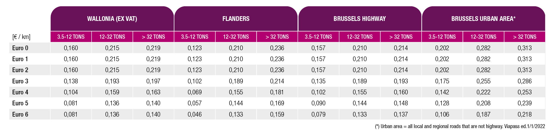 Con fecha de entrada en vigor 1 de enero de 2022 se aplicarán nuevas tarifas para el peaje en Valonia, a todos los vehículos pesados de más de 3,5 toneladas y a los vehículos remolcadores de semirremolques de la categoría N1 con el código de carrocería BC. No se añadirán carreteras de peaje a partir del 1 de enero.