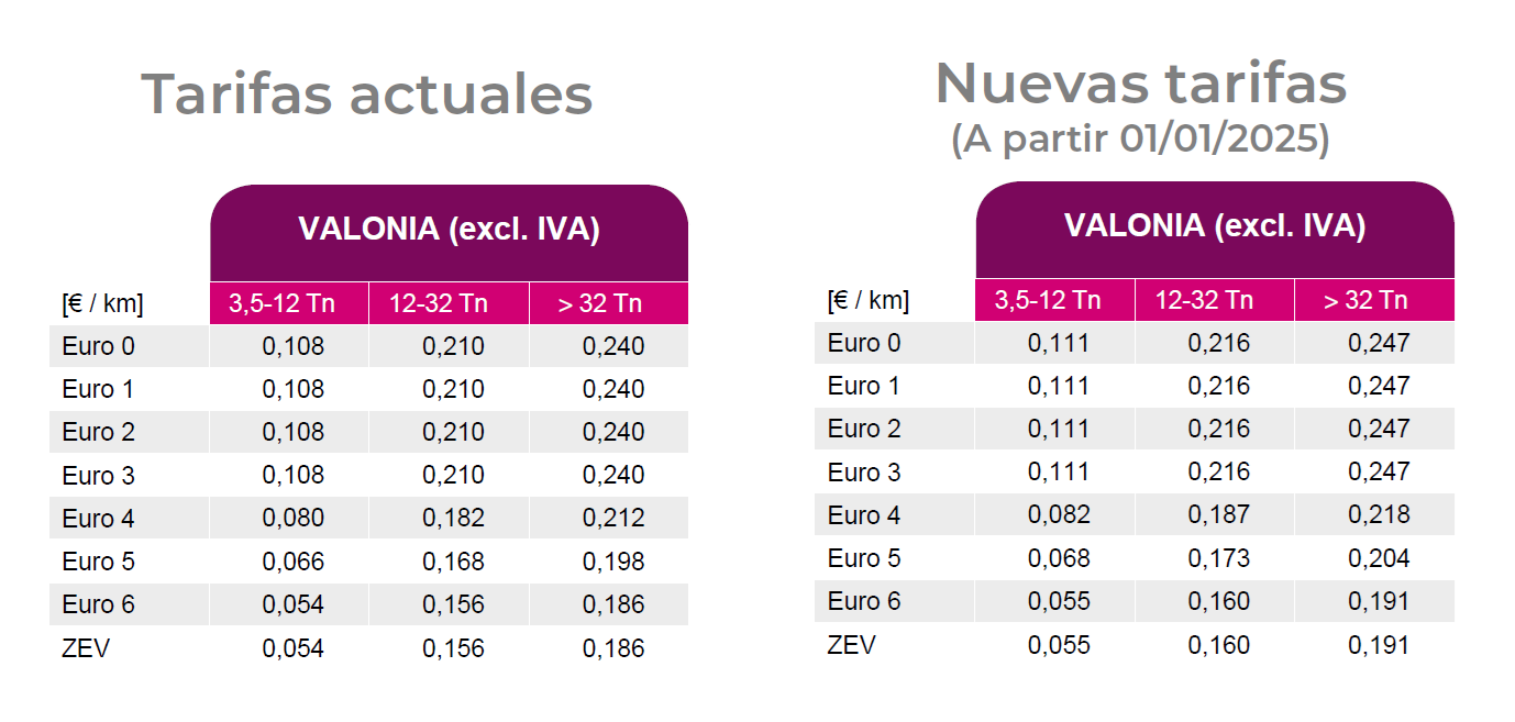 Actualización de tarifas de peajes en Valonia, Bélgica